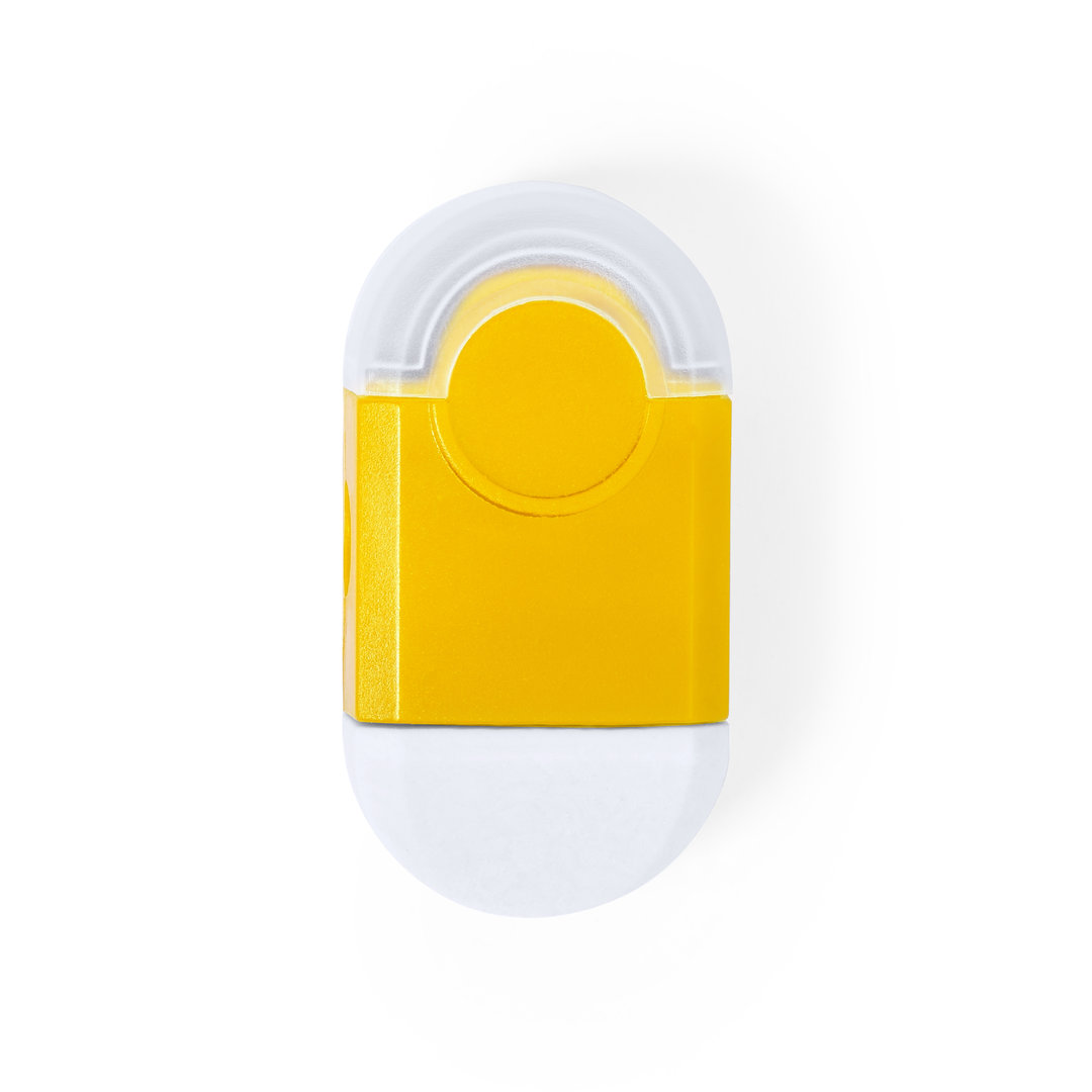 Set of rubber and sharpener in bright tones. Waste compartment with transparent hood.