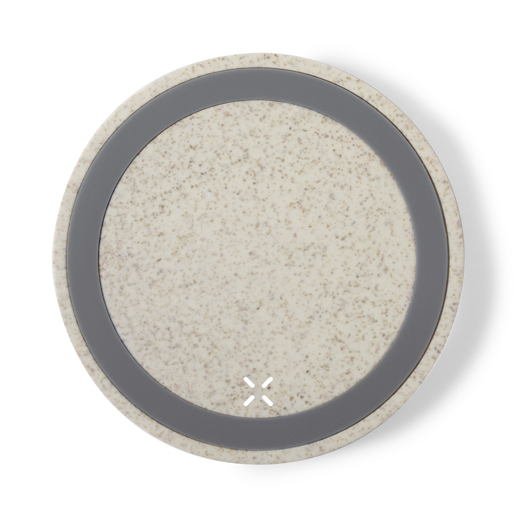 Nature line wireless charger. Shell inwheat straw, to encourage the use of natural raw materials and reducing contaminant emissions. With non-slip base and LED indicator for charging status. Compatible with smartphones with wireles charging technology and presented in an attractive, eco design box.