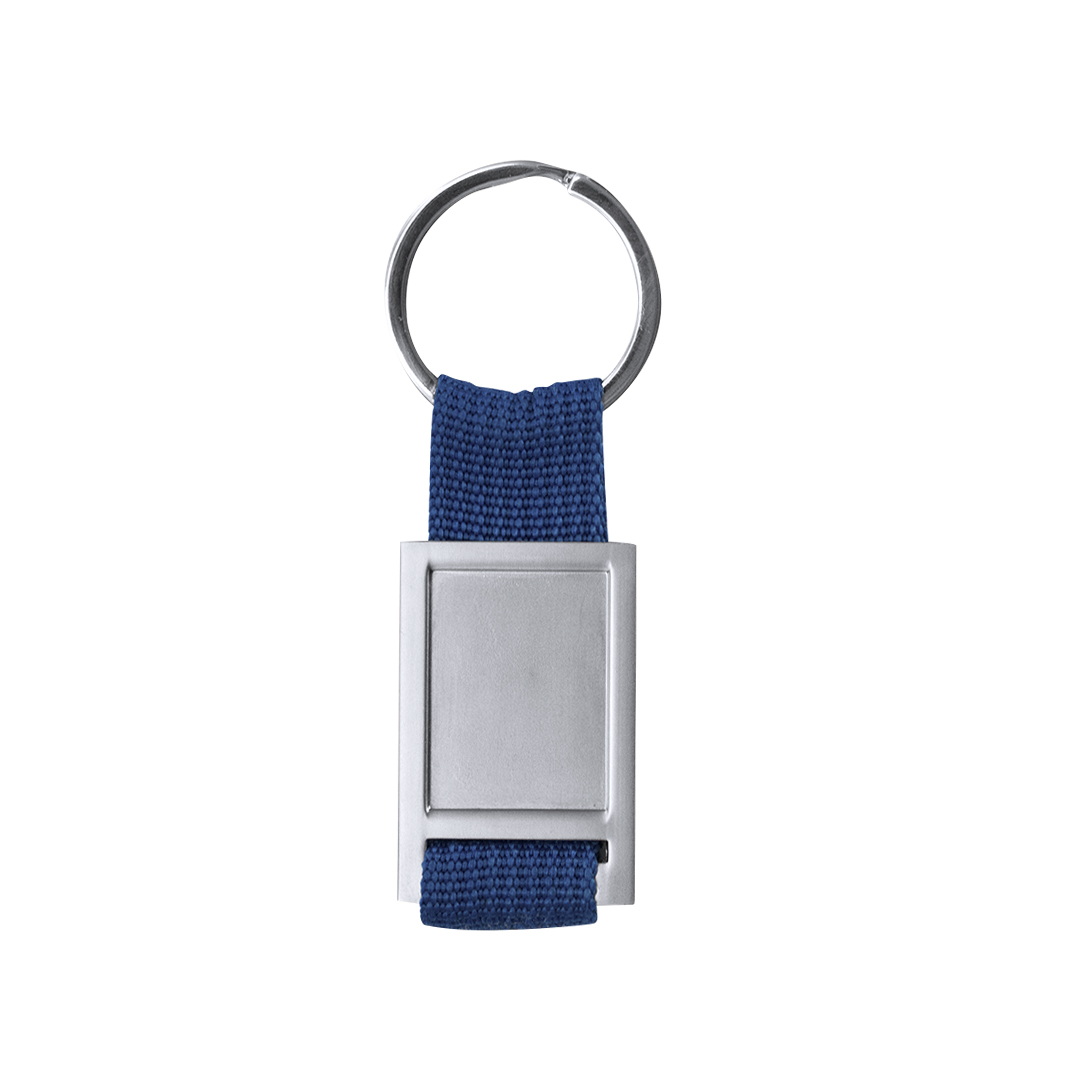 Keychain of fun design with polyester ribbon of varied and bright tones. With die-cut metal body especially designed for doming.