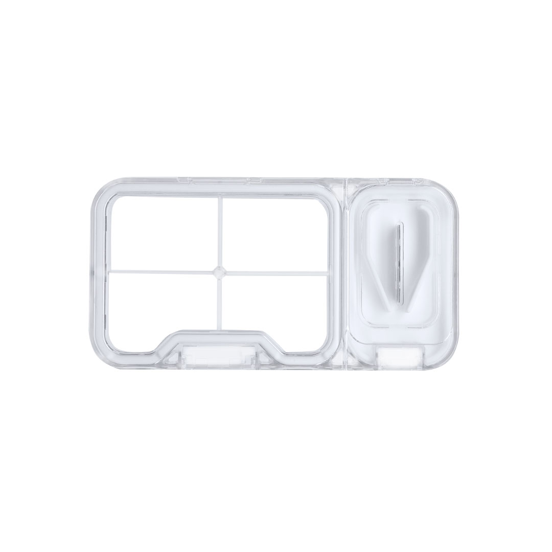 Pill organizer with 4 inner compartments, safety closure with silicone edges, and cutter for splitting pills. Made with a transparent finish.