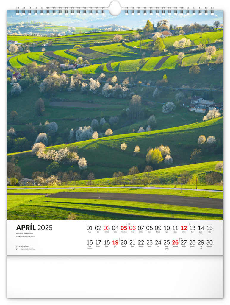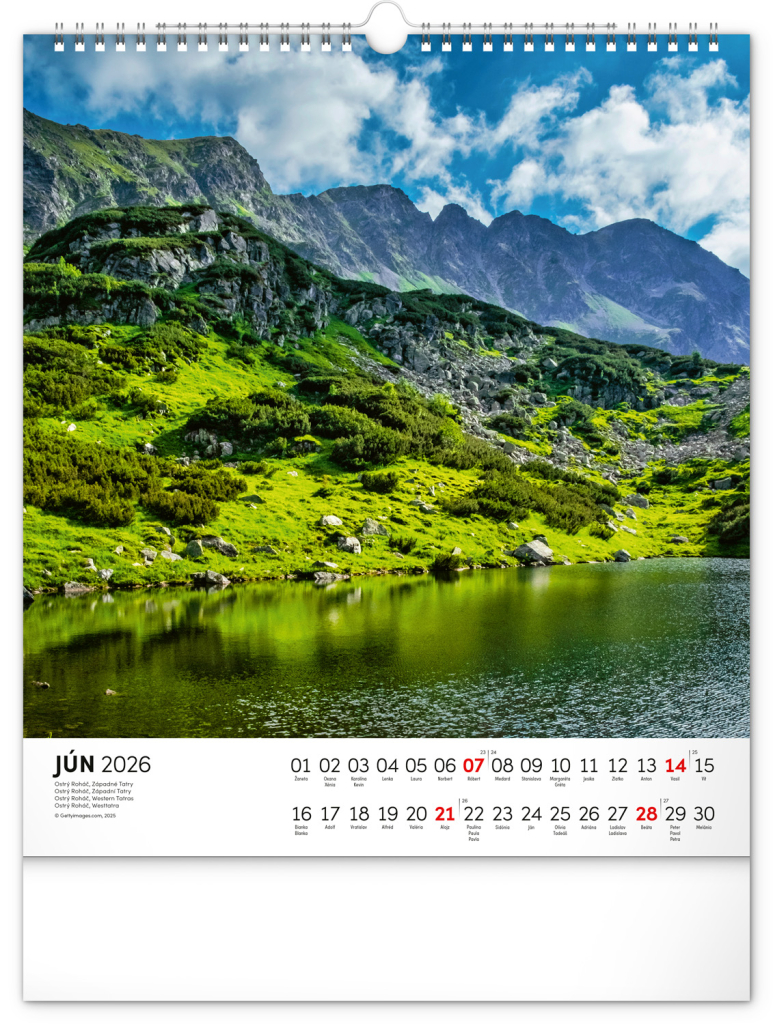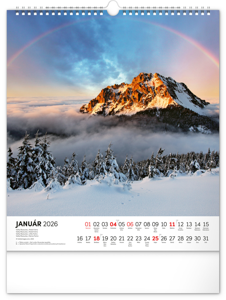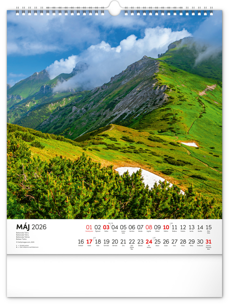 Prírodné a kultúrne dedičstvo Slovenska na stránkach kalendára v obľúbenom výškovom formáte. Fotografie dopĺňa slovenské kalendárium so zvýraznenými sviatkami a nedeľami.