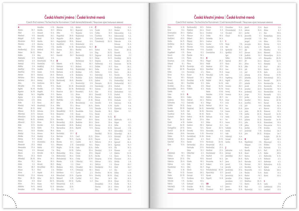 Týždenný rozvrh s česko-slovenským kalendáriom a doplnkovou angličtinou, nemčinou, maďarčinou a ruštinou.