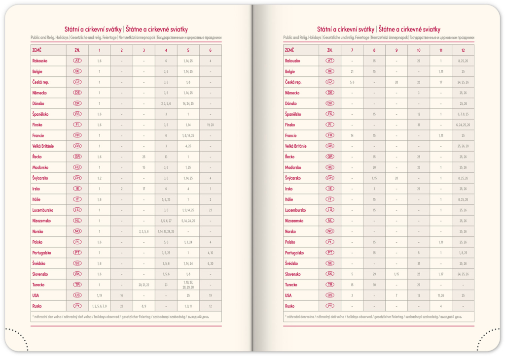 • sviatky Českej a Slovenskej republiky a medzinárodní sviatky