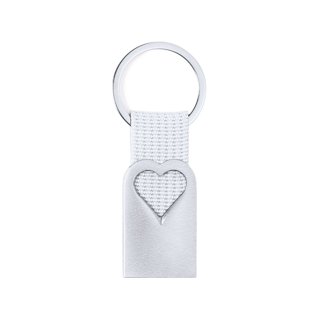 Genuine heart keyring in recycled aluminium with silver finish. Body with die-cut heart and colour ribbon. Wide branding surface, with the recycled aluminium distinctive. Matching metal ring and presented in an individual bag with kraft cardboard insert.Recycled aluminium is a material with almost infinite recycling possibilities, with no loss of its original properties and less energy consumption in the process.