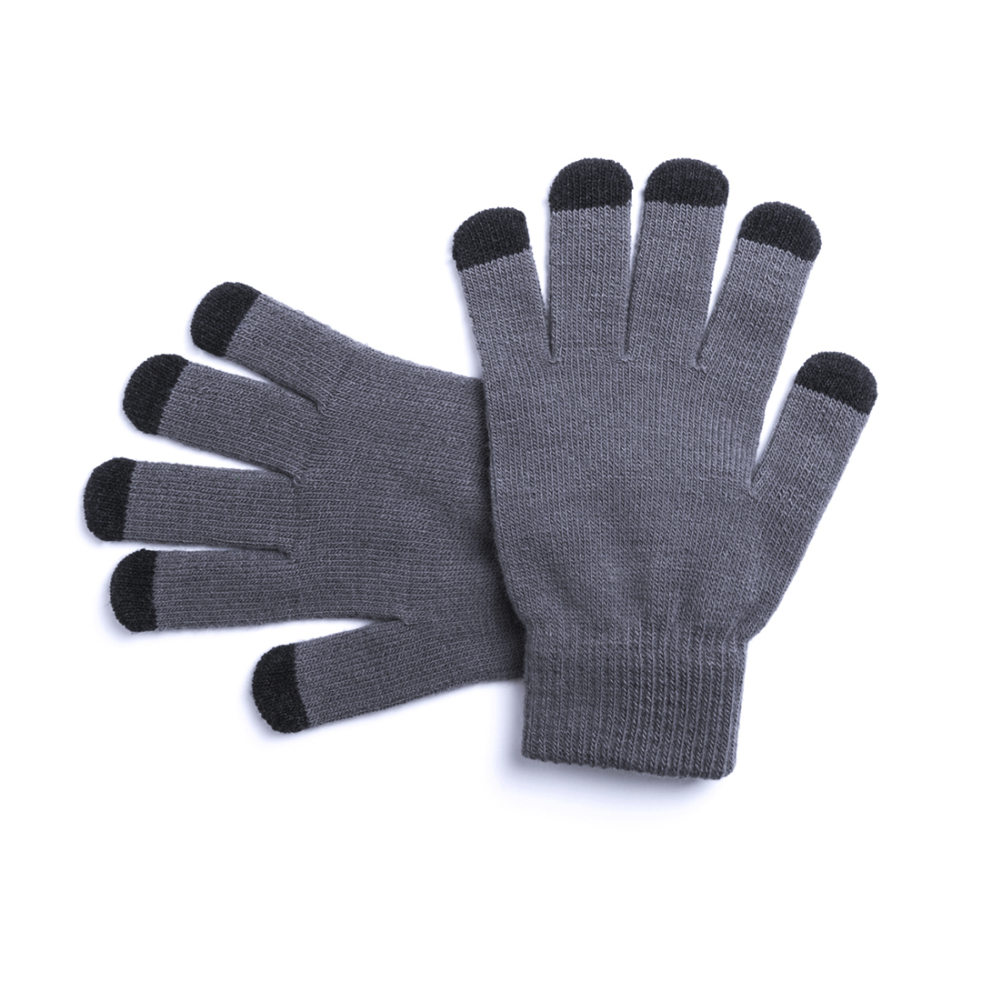 Practical pair of gloves for touchscreen devices with warm, soft acrylic finish. They integrate pointer on all toes for full touch experience. One size fits all